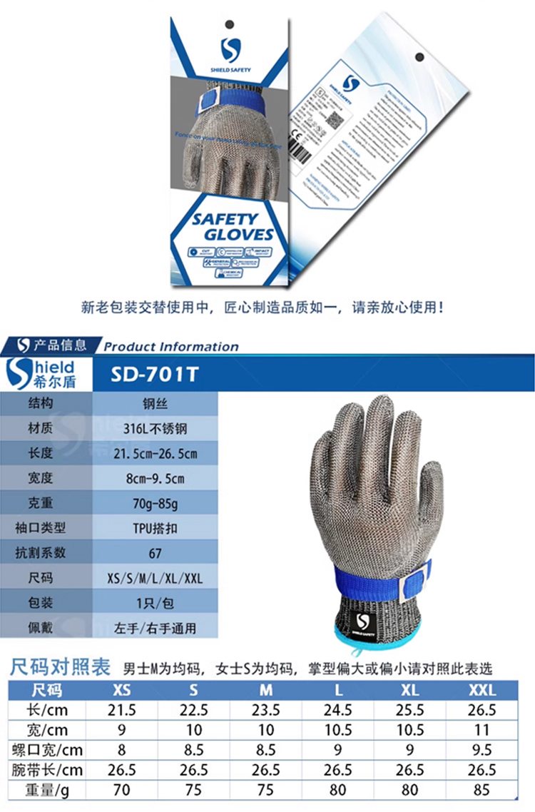 SD-704希尔盾防切割不锈钢环手套