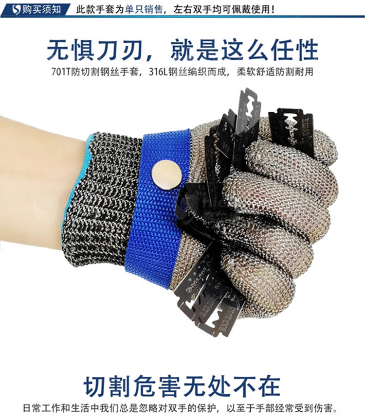 希尔盾5级防割钢丝手套裁剪验厂屠宰切肉杀鱼抓蟹撬生蚝金属手套