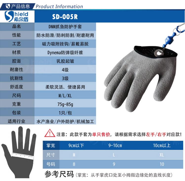 SD-005R希尔盾DNM防水防刺抓鱼手套