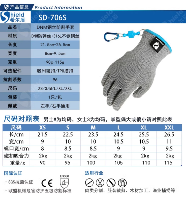 SD-706希尔盾A9级防切割DNM钢丝手套