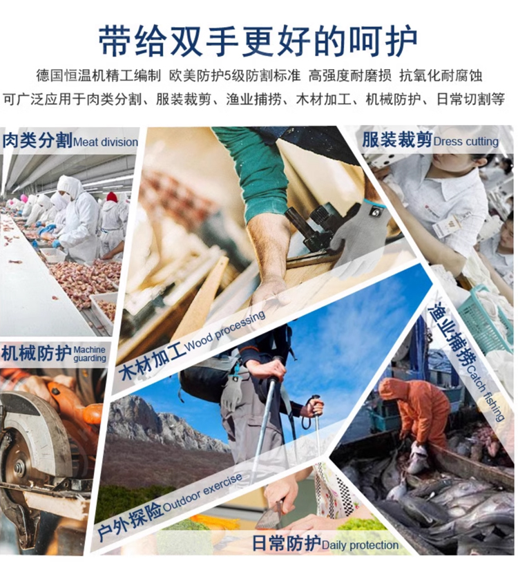全新9级防割耐磨防抓防滑DNM钢丝手套裁剪屠宰切肉杀鱼赶海手套