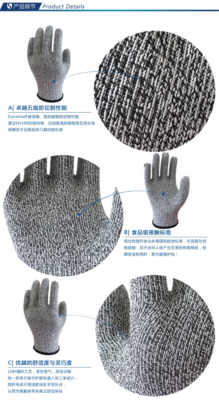 希尔盾厨房专用防割手套切菜手套5级防割食品级接触标准