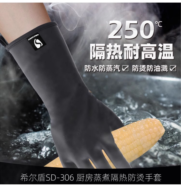 希尔盾耐高温防水防烫隔热手套肠粉蒸汽油炸防溅厨房食品级手套