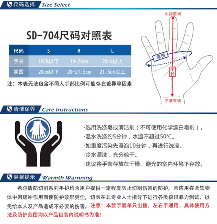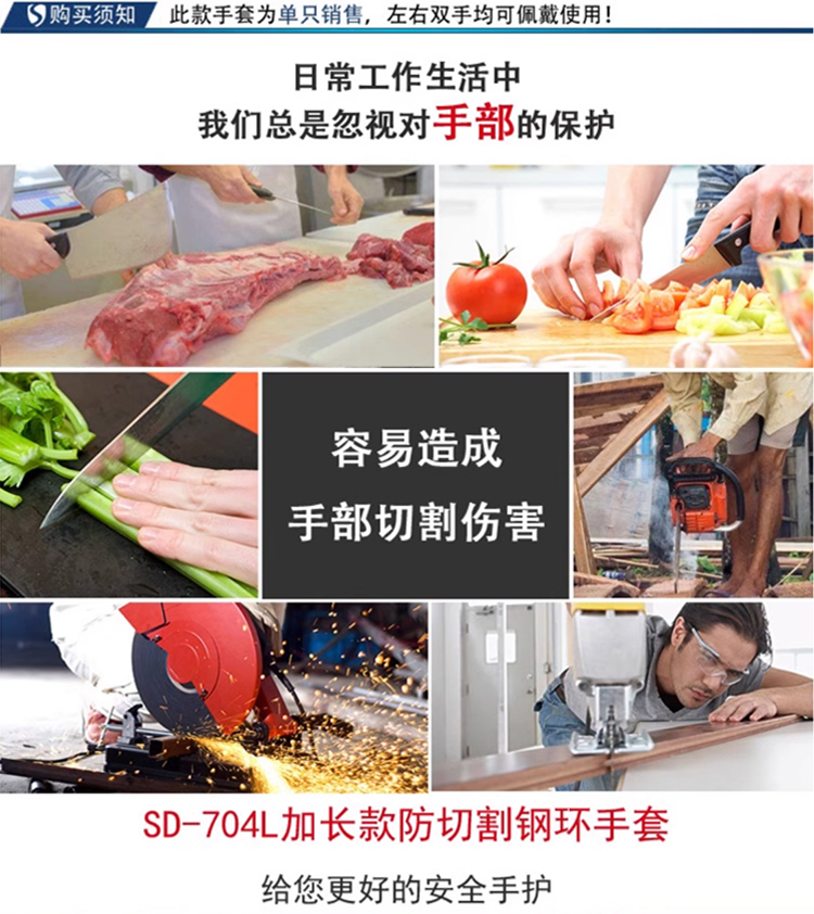 SD-701L希尔盾加长型五级防切割钢丝手套