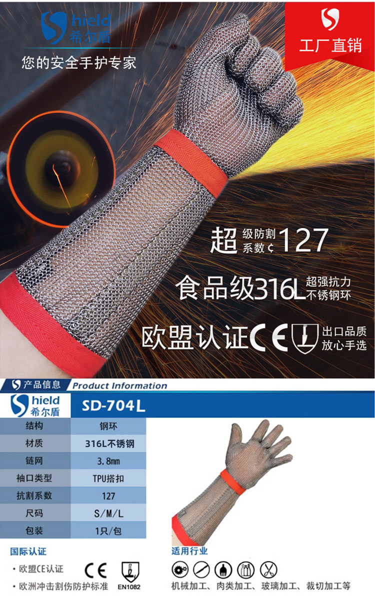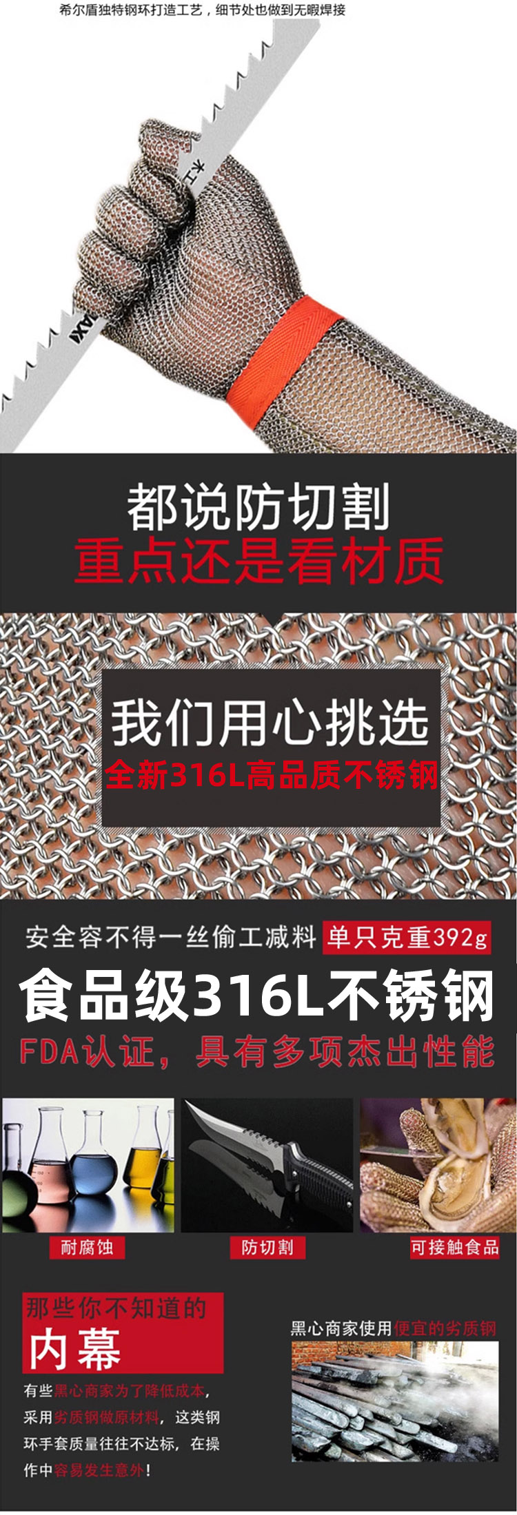 希尔盾防切割长款不锈钢环护臂手套电锯骨机屠宰裁剪杀鱼金属手套